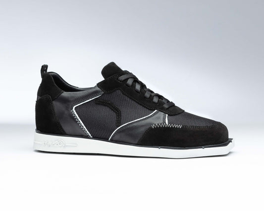 Dartschuh Leder und sportives Mesh schwarz