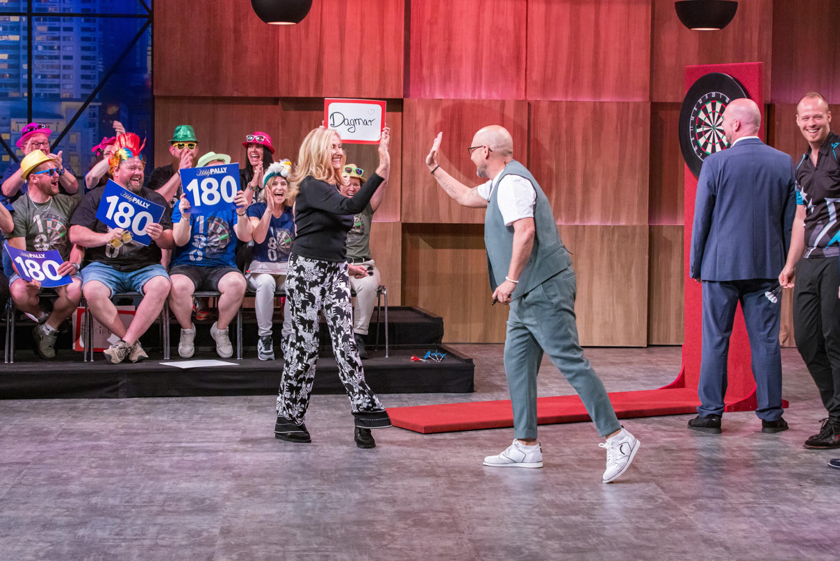 During our pitch performance, the TV set was transformed into a “Höhly Pally” with a real audience/fan block consisting of family & friends (once again, a huge thanks for your moral support!) – an absolute novelty in the popular TV format’s history! For a warm-up, we asked the investors to take part in a little darts tournament and Dagmar Wöhrl turned out to be a secret darts talent! She scored 110 points with only three throws. Wow – a score that can actually be considered world class! This spontaneous success was of course entirely due to our shoes, surely Dagmar would agree ;-)